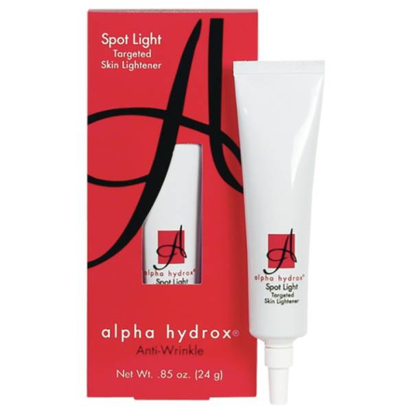 Say goodbye to sun spots, freckles, age spots and changes in skin pigmentation caused by hormones, pregnancy or the use of oral contraceptives. Alpha Hydrox Spot Light Targeted Skin Lightener contains a combination of 10% Glycolic Alpha Hydroxy Acid to significantly improve your skin's tone and texture and Hydroquinone, proven to lighten skin discolorations. Glycolic acid not only boosts the effectiveness of hydroquinone, it works to refine skin's texture so skin looks younger and more radiant.
