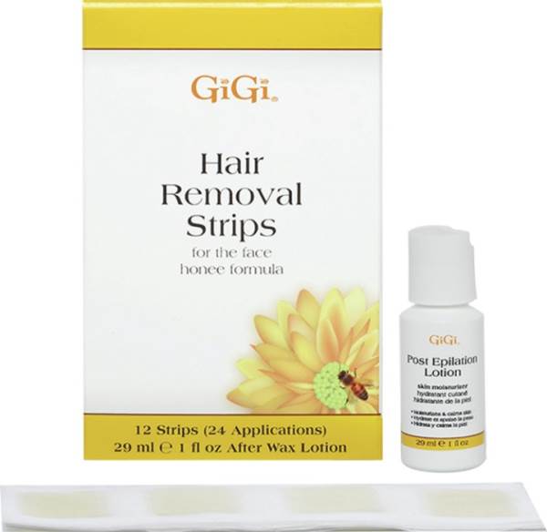 Gigi hair removal strips for the face are perfectly sized for the upper lip, eyebrow, chin and hairline. The pre-waxed strips, formulated with all natural gigi honee, lift away unwanted hair, leaving the skin soft and smooth for weeks.