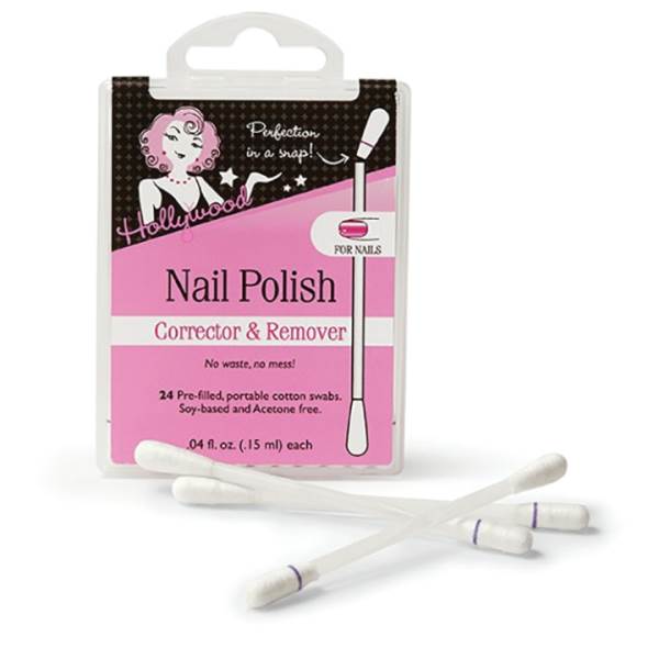 Hollywood Fashion Secrets Nail Polish Corrector and Remover contains 24 pre-filled, soy-based cotton swabs used to erase small nail polish smudges easily and precisely. These are soy-based acetone-free cotton swabs that are perfect alternative for cotton balls and wipes. Simply snap the swab stick and correct manis and pedis with ease. Includes 24 pre-filled, portable cotton swabs in a convenient storage case.