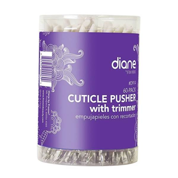 Create the perfect manicure with the Diane Cuticle Pusher with Trimmer. On one end, this tool features a rounded shape to gently push back the cuticle without scratching the nail, and on the other end features a v-shaped trimmer to remove any excess cuticle or hang nails. It can also be used to clean under the nail. Includes 60 pieces.