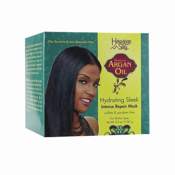 - Hawaiian Silky Argan Oil Hydrating Sleek Intense Repair Mask penetrates deep into the hair for lasting strength, shine, and manageability without weighing it down