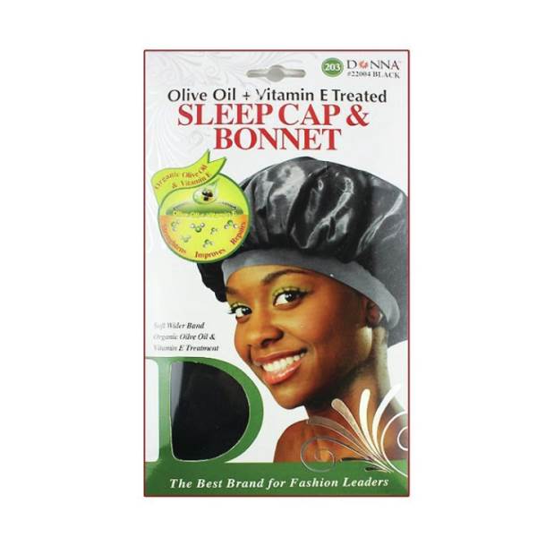 Vitamin treated sleep cap and bonnet you can wear at night while treating your hair to vitamins it needs.
