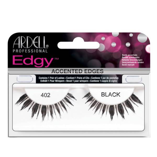 Ardell's Edgy 402 lashes is a unique combination of natural strip lashes with accent edges. Each style is designed with a tapered inside with an accentuated edgy flair, to create that glam rock star look. Capture this hot fashion trend, as all the celebrities are wearing them.
