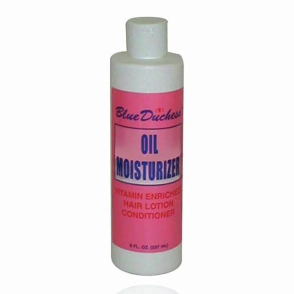 - Blue Duchess Oil Moisturizer contains special properties which help recondition dry hair - especially hair that has been injured through repeated use of chemical relaxers, hot curling combs, or hair dryers