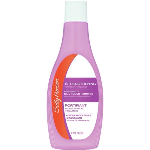 - Removes polish quickly and gently while strengthening weak, thin nails