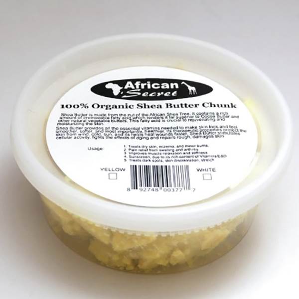 Shea Butter is made from the nut of the African Shea Tree. It contains a rich amount of irremovable fatty acid which renders it far superior to Cocoa Butter and other natural vegetable butters. This fatty acid is crucial to rejuvenating and moisturizing the skin. Shea Butter provides all the essential vitamins needed to make skin look and feel smoother, softer, and most importantly, healthier, its therapeutic properties protect the skin from wind, cold, sun and its helps heal wounds faster. Shea Butter stimulates cellular activity, fights the effects of aging and repairs rough, damages skin.