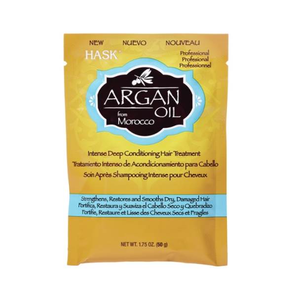 Argan Oil from Morocco Repairing Deep Conditioner. HASK Argan Oil Intense Deep Conditioning Treatment with Keratin, is a super strengthening, hydrating treatment that will restore and smooth dry, damaged, chemically treated or over processed hair. Argan oil, unique to Morocco, is known for its high absorbing, penetrating and split end qualities while leaving even the most damaged hair soft and nourished for added moisture. Treat your hair with this nourishing deep conditioning treatment, formulated to bring life back into your luscious looking locks. Free of: sulfates, parabens, phthalates, gluten, drying alcohol and artificial colors