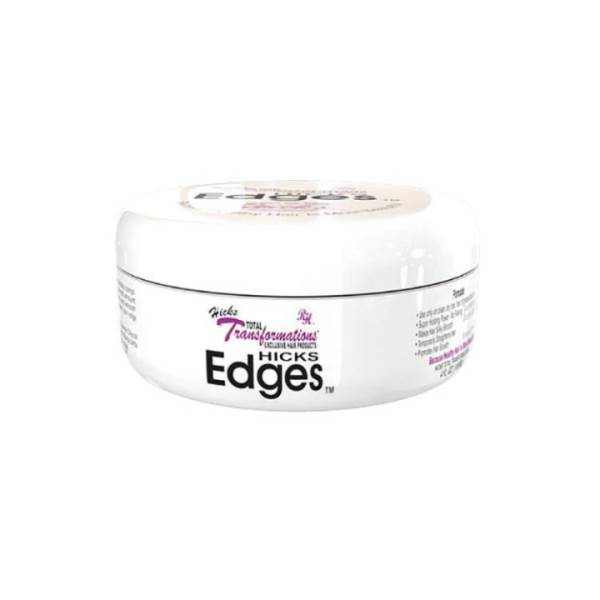 Hicks Total Transformations Hicks Edges holds hair firmly in place with a super shine and without flakiness. Leaves edges looking and feeling shinier and healthier than before.