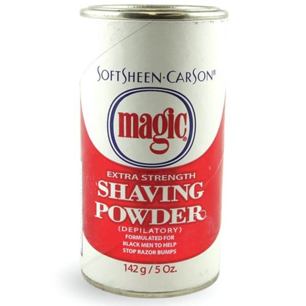 Magic depilatory shaving powder formulated for black men to help stop razor bumps. Recommended by the national medical association.