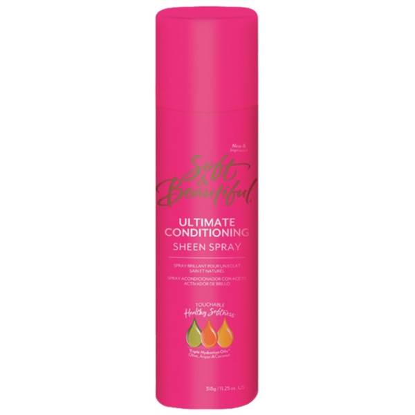 Beautiful Ultimate Conditioning Sheen Spray adds weightless sheen for shiny