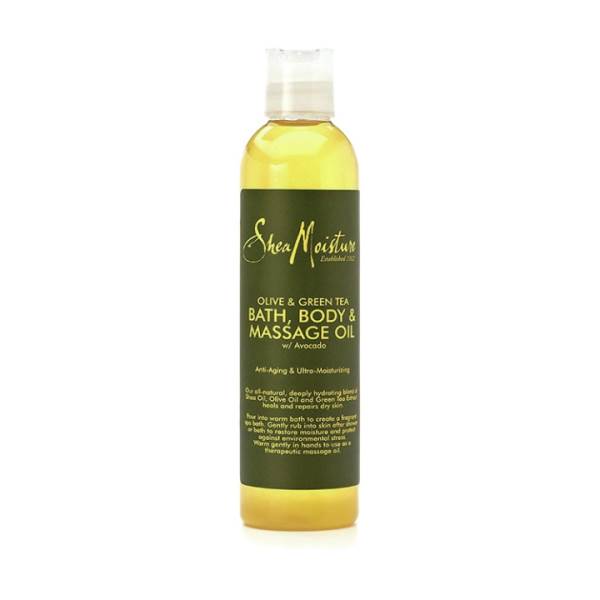 SheaMoisture's Olive & Green Tea Bath, Body & Massage Oil helps deeply hydrate and repair dry skin. Helps prevent signs of early aging. Creates a fragrant spa bath, relaxing mind and body.
