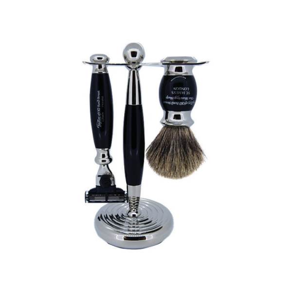Edwardian Set with Mach 3 Razor and Pure Badger Brush in a stylish black finish. Made in the UK.