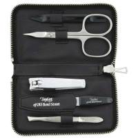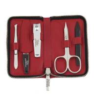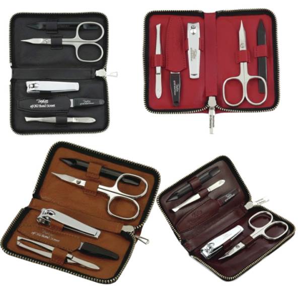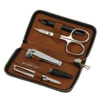 A luxurious, handmade, fine leather manicure case with zip fastening. This set has everything the modern male needs to stay well-groomed.