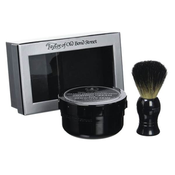 A perfect gift for those with sensitive skin containing Pure Badger Shaving Bursh (P1020B) and Jermyn Street Collection Shaving Cream Bowl 150g.