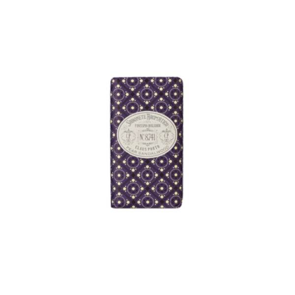 This Classico mini soap, 8741, is milled with pistachio butter for a moisturizing bathing experience and infused with its own fragrance. It is illustrated with a design that draws on Claus Porto’s rich graphic archives, hand-wrapped, and finished with a regal-looking wax seal.
