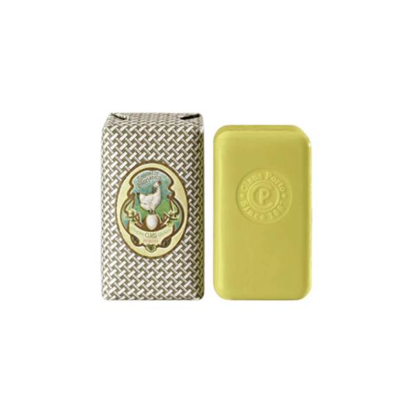 This Classico mini soap, Chicken, is milled with pistachio butter for a moisturizing bathing experience and infused with its own fragrance. It is illustrated with a design that draws on Claus Porto’s rich graphic archives, hand-wrapped, and finished with a regal-looking wax seal.
