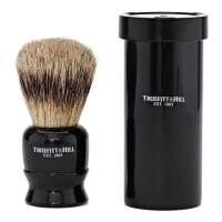From the Traveller Collection of grooming accessories. Truefitts' badger haired shaving brushes are hand-made in the UK with the finest quality super badger hair. The fibrous natural bristles of the badger haired brush hold significantly more water than their synthetic equivalent, making badger haired brushes the best accompaniment to your shaving ritual. Brush comes with protective travel tube and brush-care instructions.