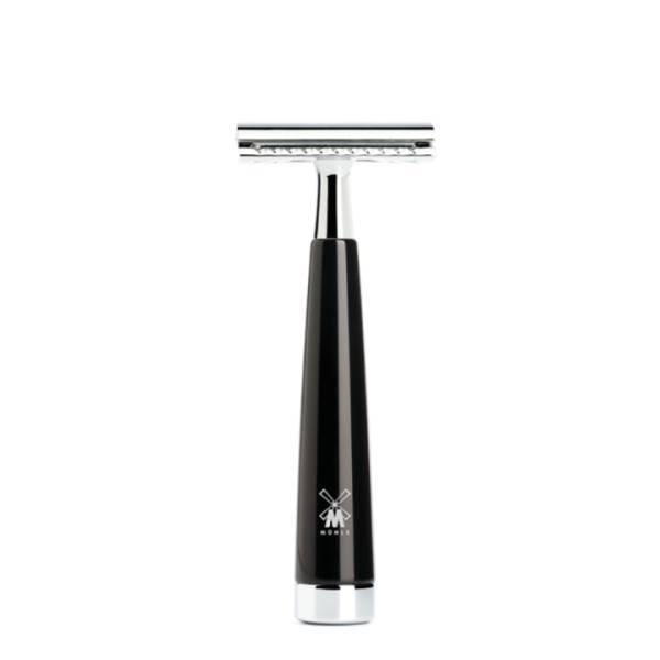 The Material - High-grade resin. High-grade resin is a high-quality synthetic material, the surface of which is processed and refined separately. The material is ideal for exclusive accessories and writing implements because it facilitates a broad spectrum of modern and classical designs in many attractive colours. To begin with, the aesthetic basic shapes for brush and razor handles are turned out of solid rods. Then each individual work piece is polished in several passes to give the surface its special gleam. This processing method lends the models a pleasant feel and secures their beauty for many years to come. Without chrome the world would forfeit a lot of its lustre. In the finish used for our wet shaving accessories it demonstrates its best qualities: The material is corrosion-resistant, very long-lasting and has a luxurious, alluring lustre. When contrasted with this, the colours and shapes of other premium materials are shown to their very best advantage. The Razorhead - Classic blade. For generations, the safety razor has been regarded as a stylish classic which can even shave edges with precision. For many, it is the razor par excellence. Its styling is ideally suited to the design of the MÜHLE products. Even if the open blade does demand a little respect at first: After a brief familiarisation period, and guided by a steady hand, it produces a very close shave and a lasting result. Unlike modern blade systems, the head of the safety razor does not move. The blades are replaced by unscrewing the cap. They can be purchased from us and by retailers everywhere. We recommend our rust-proof MÜHLE razor blades which are the perfect match for our safety razors.