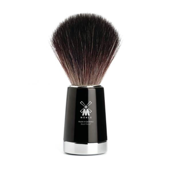 The Material - High-grade resin High-grade resin is a high-quality synthetic material, the surface of which is processed and refined separately. The material is ideal for exclusive accessories and writing implements because it facilitates a broad spectrum of modern and classical designs in many attractive colours. To begin with, the aesthetic basic shapes for brush and razor handles are turned out of solid rods. Then each individual work piece is polished in several passes to give the surface its special gleam. This processing method lends the models a pleasant feel and secures their beauty for many years to come. Without chrome the world would forfeit a lot of its lustre. In the finish used for our wet shaving accessories it demonstrates its best qualities: The material is corrosion-resistant, very long-lasting and has a luxurious, alluring lustre. When contrasted with this, the colours and shapes of other premium materials are shown to their very best advantage. The Brushhead - Black Fibre We developed this purely vegan quality specially for wet shaving. In their dark colouring and softness the synthetic fibres largely resemble natural hair material of pure badger quality and are also a little softer at the tips. The synthetic fibres possess equally good performance characteristics. At the same time, the fibres prove somewhat sturdier and more durable. Some users prefer this material not only due to its vegan properties, but also because it produces particularly creamy shaving lather.