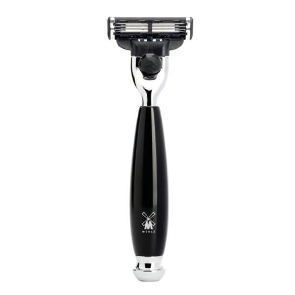 The Material - High-grade resin. High-grade resin is a high-quality synthetic material, the surface of which is processed and refined separately. The material is ideal for exclusive accessories and writing implements because it facilitates a broad spectrum of modern and classical designs in many attractive colours. To begin with, the aesthetic basic shapes for brush and razor handles are turned out of solid rods. Then each individual work piece is polished in several passes to give the surface its special gleam. This processing method lends the models a pleasant feel and secures their beauty for many years to come. Without chrome the world would forfeit a lot of its lustre. In the finish used for our wet shaving accessories it demonstrates its best qualities: The material is corrosion-resistant, very long-lasting and has a luxurious, alluring lustre. When contrasted with this, the colours and shapes of other premium materials are shown to their very best advantage. The Razorhead - Gillette Mach3. The Gillette Mach3 system is one of the most frequently used shaving systems in the world. Three progressively spaced blades guarantee a comfortable and close shave. The blades are available from retailers everywhere. Wet shave razors from MÜHLE are compatible with the systems Gillette Mach3 and Mach3 Turbo.