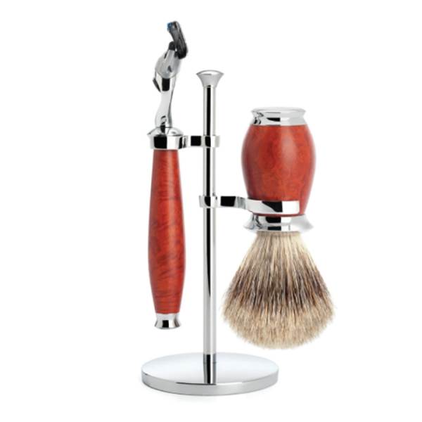 This material has long been valued by lovers of fine tobacco pipes or inlaid work. But only a few people know that the exquisite briar wood is taken from the Erica arborea which grows exclusively in Mediterranean regions. In order to process the vividly grained wood for brushes and razors the wood is first cooked.