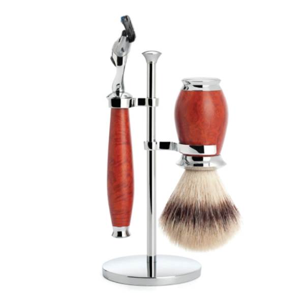This material has long been valued by lovers of fine tobacco pipes or inlaid work. But only a few people know that the exquisite briar wood is taken from the Erica arborea which grows exclusively in Mediterranean regions. In order to process the vividly grained wood for brushes and razors the wood is first cooked.