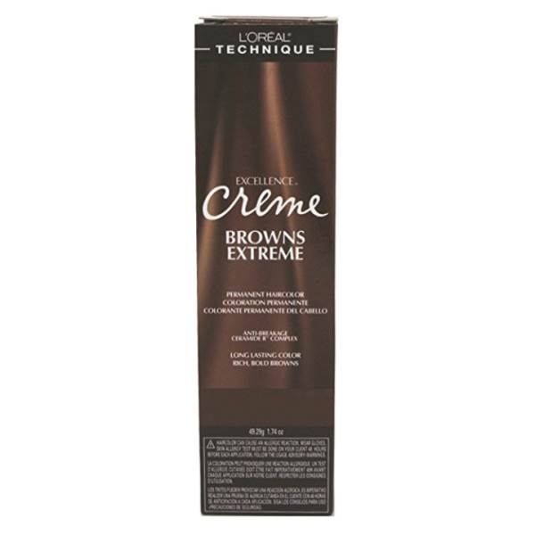 L'Oreal Excellence Browns Extreme Permanent Creme Haircolor is a collection of rich, long-lasting bold browns. A patented Anti-Breakage Ceramide R Complex penetrates the hair's cortex to condition and protect against breakage. You will see and feel conditioning and smoothing effects immediately. Available in 6 sensuous browns so intense, you'll want to try them all.