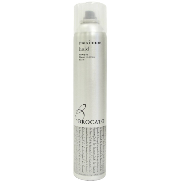 Brocato Maximum Hold Hair Spray, 10 oz. An exceptional holding aerosol hair spray that delivers a resistant and brilliant finish.Maximum Hold Hair Spray is used after styling as a finishing spray for maximum hold.The finishing spray provides maximum hold and shine to any hairstyle. Hair has tremendous shine, manageable control and enhanced volume.