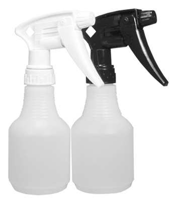 Natural HDPE bottle with black or white Model 220 trigger sprayer. Ideal for custom imprinting.