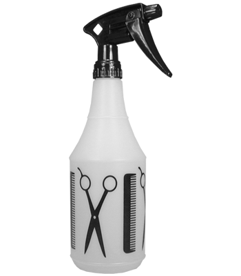 Natural HDPE bottle with the original trademarked black Shears and Comb graphic and black Model 220 trigger sprayer.