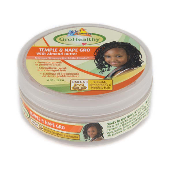 This is real help for your little girl's tender temples and nape. Our soothing treatment of almond butter, Omega 3, vitamins and minerals goes right to work, healing both of these tough areas with a warm tingle that instantly lets her know her new, stronger hair is on the way - no stops allowed. Size: 4oz.