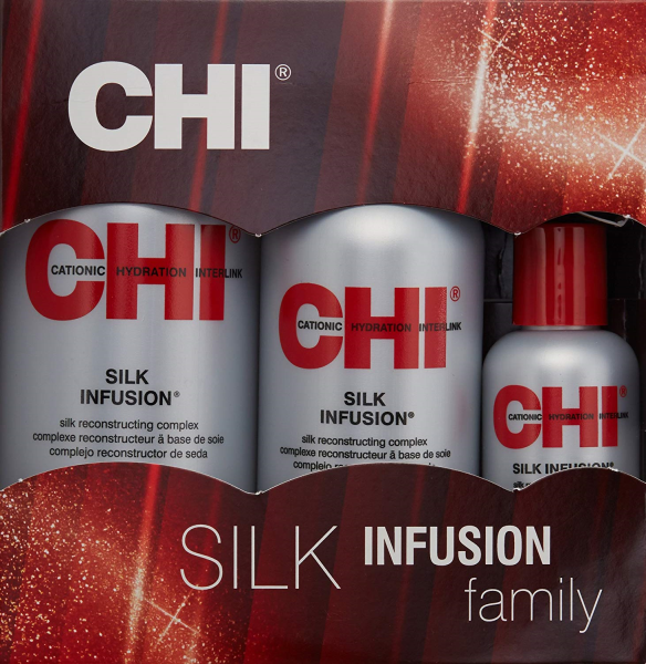 CHI Silk Infusion Silk Reconstructing Complex is a rich leave-in treatment enriched with silk, wheat, and soy proteins that will penetrate and help strengthen the hair, providing incredible softness, manageability and shine without build up. Kit Included 1 Each Of Silk Infusion 2Oz, 6Oz, 12Oz