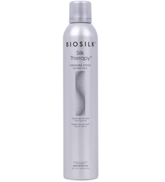 BioSilk Silk Therapy Finishing Spray Natural Hold is a uniquely designed hairspray developed to maintain your favorite looks with pliable hold while using silk botanicals to provide brilliant shine.