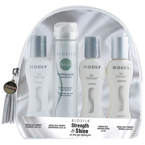 Provides unparalleled shine and revitalizes hair for soft, supple, and shiny results at all times with BioSilk Silk On the go styling kit. Includes: BioSilk Silk Therapy Original, BioSilk Silk Therapy Finishing Spray, BioSilk Silk Therapy Shampoo, BioSilk Silk Therapy Conditioner