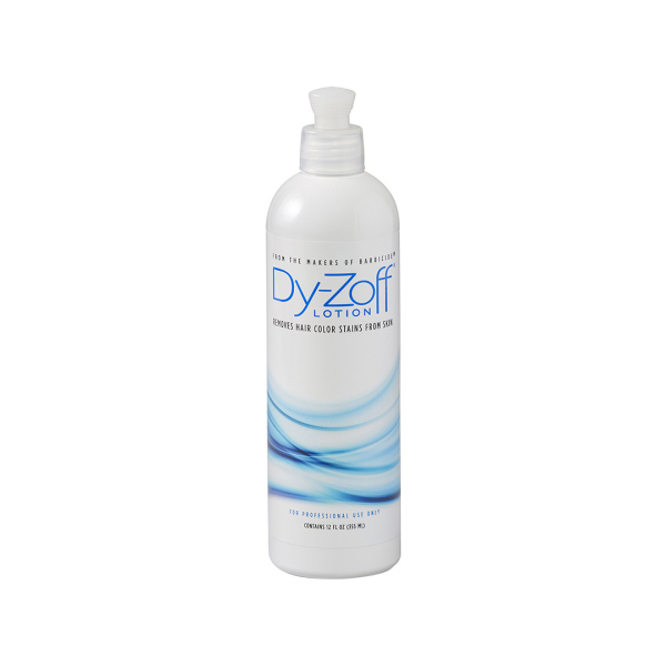 Dy-Zoff Lotion is the perfect solution for the stylist who wants the freedom to use cotton or towels and adjust the amount of solution for hair color stain removal.