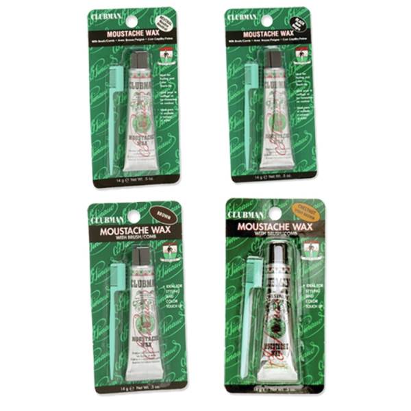 CLUBMAN Pinaud Moustache Wax Pinaud Clubman (since 1810) .5 oz Professional Moustache wax with brush/comb for moustaches, beards, sideburns and eyebrows. Provide an easy way to style moustache hair and makes hair stay just where you placed it.