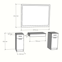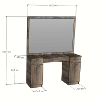 Cordoba / Baroque / Black Matte 18 mm MDF laminated panel4 mm float mirror (safety film feature against dispersion)Apron pivot with brakeDrawer slide with brakeMetal handleAdjustable floor attachment