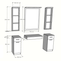 4 mm float mirror (safety film feature against dispersion)Apron pivot with brakeDrawer slide with brakeMetal handleAdjustable floor attachment