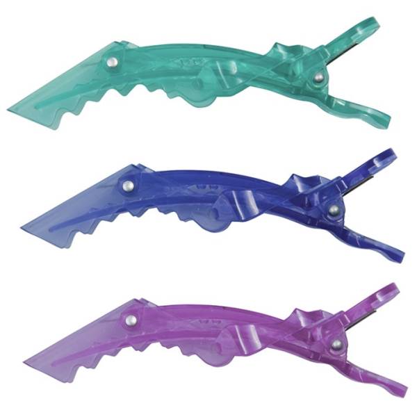 Gator clips have a strong hinge grip jaw that adjust to any hair thickness. Comes in a variety of colors and holds hair well.