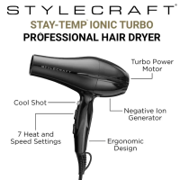StyleCraft STAY-TEMP Ionic Turbo Hair Dryer