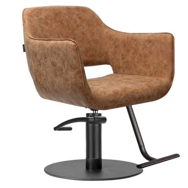 Blake Styling Chair Tan with Black T Footrest - Hydraulic Standard Height 165mm Black Lift and Omega Round Black