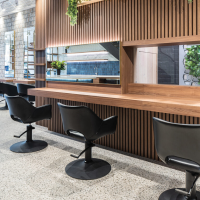 - The adjustable seat height provides customisable comfort for both client and hairdresser