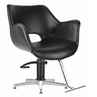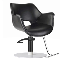A winged arm hairdressing salon chair, with a retro twist. With curved lines and angled arms, the Chloe is a 60s inspired take on the classic wing chair design. With detail piping and round bucket seat, it is a retro twist on sophistication.
