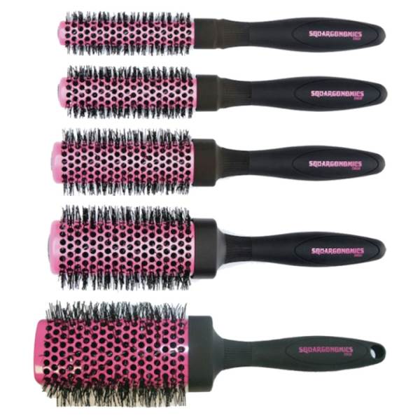 - Pink square barrel with crimped bristle brush