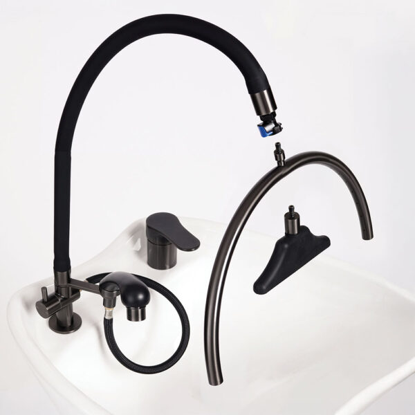 Includes Headspa Flexible Arm, Showerhead, Basin Showerhose & Showerhead Holder, Flick Mixer, Small Black Braided Hose with Hot & Cold Outlets