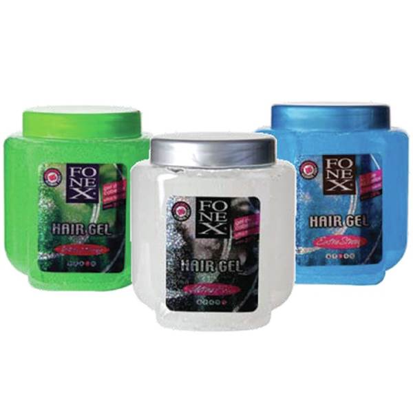 Fonex gummy hair gel. Maximum Rock Solid Hold 5 out of 5. Big 32 oz tub of gummy hair gel to last. Enriched with vitamin B5 to keep your hair looking strong and healthy. No flake formula. Lovely long lasting Strawberry fragrance guarenteed to stay on hair.