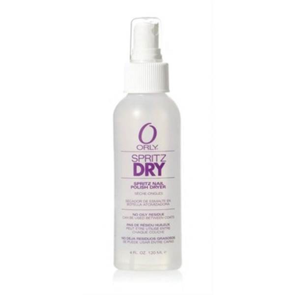 - Orly Spritz Dry is a liquid nail polish dryer designed you help you get out the door in a hurry! Spritz Dry dries polish quickly with a light gentle mist. No messy brushes or clean-up, Orly Spritz Dry is designed with a convenient spray pump so you can spritz your nails on the run without any worry of smudging or nicking. A must have for any busy girl, Orly Spritz Dry keeps your manicure looking great!