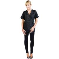Betty Dain's Vita Stylist Jacket blends functionality and style for an attractive top perfect for any salon or spa environment. This short sleeved, wrap-style jacket ties on the side to create an attractive V-neckline and flattering, contoured fit. It also features an angled pocket with bottom zippers for easy hair removal and cleaning, and hidden zippers along the back seams for ease of movement and a precise fit. Best of all, it's as comfortable as it is elegant - the material is a soft, lightweight water resistant stretch fabric that moves with you and is machine washable. Designed and manufactured by Betty Dain, which has listened to the needs of the beauty industry and created high-quality solutions for over 60 years.