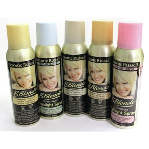 Jerome Russell B Blonde Temporary Highlight Spray this no-commitment spray is a great alternative to those harsh permanent bleach lighteners and can be used to temporarily highlight just a few strands, your whole head, touch-up your roots, cover greys, or give a chunky effect. Best of all it easily washes out with just one shampoo.