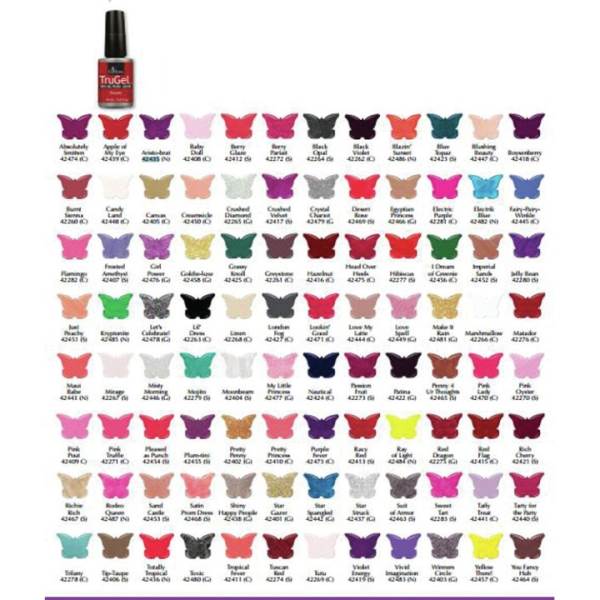 Brush on brilliance with 114 shades of beauty. From nudes to pinks, reds and blues, a gorgeous glossy look is waiting for you. Offered in a variety of finishes - crèmes, shimmers, neons and glitters. TruGel soaks off easily in 10 minutes.